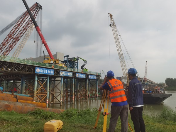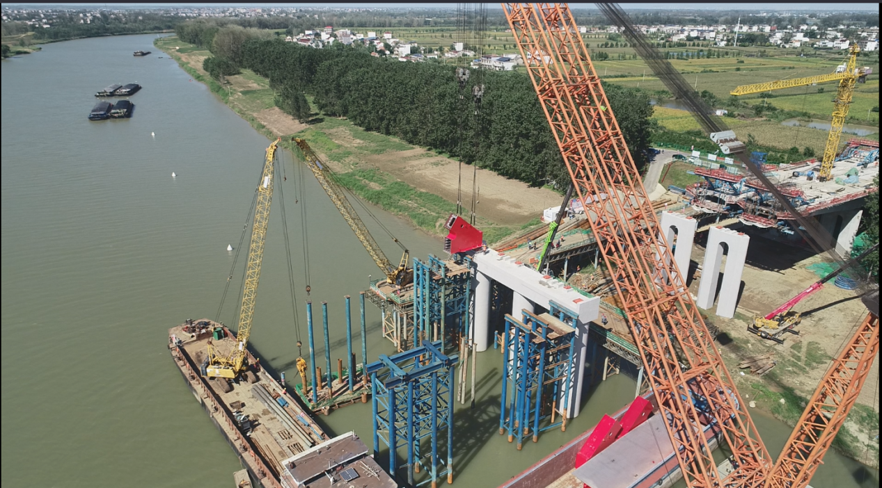 S428颍上杨湖至塞涧颍河大桥及接线工程主桥钢结构首件顺利吊装